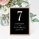 La elegante y elegante tarjeta boda de mesa en blanco y negro cuenta con un hermoso diseño de monograma de tipografía minimalista. El texto del personalizado y el número de la tabla se pueden personalizar completamente con los nombres de la novia y del novio y la fecha del boda. Hay que tener en cuenta que cada tarjeta de número de tabla debe ser personalizada y agregada individualmente al carrito de la compra (1,2,3...etc.). Por favor, compre nuestra Colección de Bodas Clásicos Elegantes en Blanco y Negro para coordinar diseños.