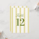 Número de mesa de boda rayado amarillo y verde