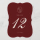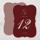 Número de mesa de boda recortado en burgundy con forma esculpida de vieira - un detalle destacado para recepciones elegantes de otoño e invierno. Inspirado en la estética de Dinero Antiguo, Lujo Silencioso y estilo de boda de Herencia y Patrimonio. Perfecto para parejas que aman mesas refinadas y elevadas. Estiliza con manteles de terciopelo, centros de mesa con velas y flores burgundy profundas para crear un ambiente de recepción dramático y lujoso.