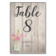 Número de mesa de boda rústica con jarrón de flore