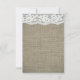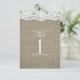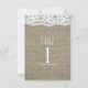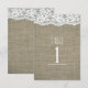 Tarjeta de número de mesa de boda rústica simple de arpillera y encaje