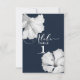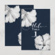 Tarjeta de número de mesa de boda tropical azul de hibisco blanco