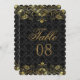 Tonos elegantes dorados y negros, patrón de flores y damascos vintage, número de mesa. Se pueden solicitar diferentes combinaciones de colores enviándome un correo electrónico directamente.