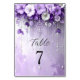 Hermoso número de mesa de flores púrpuras con perlas colgantes