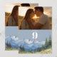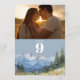 Número de mesa de foto de montaña con acuarela azu
