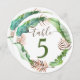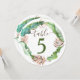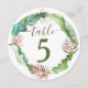 Un simple letrero de número de mesa con hojas tropicales verdes y marrones es hermoso para una recepción de boda con tema de isla. El diseño de hojas de plátano verdes y hojas de helecho marrones en acuarela es versátil para una variedad de letreros de mesa para cena. Transfiere fácilmente el arte de boda con tema de playa a una variedad de tarjetas y letreros.