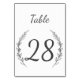 Tarjeta boda número de mesa en diseño de laurel rústico. Perfecto para el boda rústico y campestre. El color de fondo blanco se puede personalizar con la herramienta en línea de opciones de color de fondo de zazzle. Para una mirada coherente, visita mi tienda para ver toda la colección de números de tabla bodas. Material gráfico diseñado por Calani May.