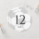 Número de mesa de celebración de balón de fútbol. Número de mesa de balón de fútbol redondo en plata, y texto editable en el frente de la tarjeta.