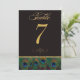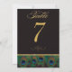 Número de mesa de plumas de pavo real negro y dora