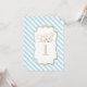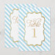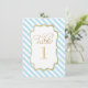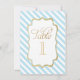 Personalice estas elegantes tarjetas de mesa temáticas de rayas azules con su información.