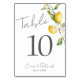 Número de mesa de verano de limón cítrico clásico