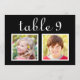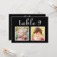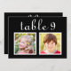 Tarjetas modernas y únicas de número de mesa para boda personalizadas con fotos de la infancia de la novia y el novio a una edad que corresponde con el número de la mesa. Para personalizar: escriba el número de la mesa, haga clic en "cambiar" junto a las fotos predeterminadas para subir sus propias fotos digitales o escaneadas, y agregue esa tarjeta de número de mesa individual a su carrito de compras. Repita para todos los números de mesa que necesite. Texto personalizado en letra blanca sobre fondo negro (se puede personalizar) .