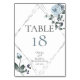 Tarjeta de Número de Mesa de Boda | Rosas de acuarela polvorientas azules boho rodean un marco plateado con forma de diamante triple con vegetación de color verde salvia. El reverso es el mismo. Personalice el texto, el estilo de letra, el color y el tamaño. Obra original creada para BarefootBride™ por © WhimsicalArtwork™ - Esta es parte de un conjunto completo de papelería de boda con boda, baby shower y otra papelería de eventos.