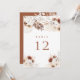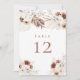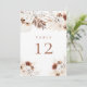 Nuestra elegante tarjeta de número de mesa para bodas es la forma perfecta de anunciar su día especial a sus invitados. Cada tarjeta presenta intrincados diseños florales y hermosa tipografía en colores neutros, incluyendo terracota, beige y tonos terrosos. Impresas en cartulina de alta calidad, seguramente impresionarán a sus invitados y establecerán el tono para su día especial.