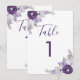 Esta tarjeta de número de mesa tiene flores de acuarela púrpura claras y oscuras, hojas y elementos florales plateados. El texto es totalmente editable. También puedes cambiar la fuente. Esta tarjeta tiene invitaciones, sobres, etiquetas y sellos a juego. ¡Haz que todos los elementos de tu boda estén coordinados!
