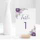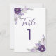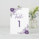 Número de mesa floral de acuarela plateada y púrpu