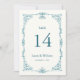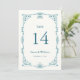 Número de mesa de marco de ornamento floral turquesa vintage elegante para invitación de boda. Marco de ornamento floral turquesa vintage elegante en tarjeta de invitación de boda de color dorado. Plantilla de invitación de boda con redacción tradicional. Invitación de marco floral vintage de oro rosa. Invitación de boda con borde barroco vintage