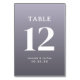 Esta elegante tarjeta de mesa de boda presenta un diseño minimalista con un fondo morado degradado que transita de claro a oscuro. La disposición es limpia y moderna, destacando la fuente serif blanca y negrita utilizada para "MESA 12", que sirve como punto focal. Abajo, un texto más pequeño proporciona espacio personalizable para nombres y fechas, manteniendo un tono sofisticado y formal ideal para bodas. El estilo general es discreto pero refinado, perfecto para crear una atmósfera de calma sofisticación en su evento especial.