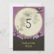 Números de mesa para una boda de Halloween en morado con luna, cementerio y murciélagos sobre un cielo nocturno morado. Celebre su Hallowedding con estilo con este diseño de número de mesa de Halloween hermosamente espeluznante y elegante. El texto, la fuente y los colores de la fuente son editables. Esto coincide con una colección en mi tienda que también está disponible en naranja, verde y negro.