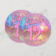 ¿Te encantan los 80? ¿Te gustan las bolas de discoteca? El número de mesa redondo de bola de discoteca retro dorado rosa caliente cuenta con bolas de discoteca coloridas rodeadas de efecto digital de brillo rosa brillante y efecto digital de oro falso. Esta invitación de boda rosa chic es perfecta para una boda divertida y retro.
