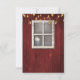 Tarjeta de número de mesa rústica con ventana y luces de granero rojo. Busque artículos coincidentes en mi tienda.