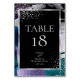 Tarjeta de número de mesa de boda | Trazos de pincel texturizados metálicos falsos en negrita en un patrón abstracto en tonos de paleta de colores blanco perla, ciruela, azul verdoso, violeta, lila con inserto plateado acentuado con marco doble plateado con salpicaduras de copos plateados: este es un diseño atrevido y seguramente llamará la atención. Combina bien con tu tema de boda lavanda y aqua, azul verdoso, lila, orquídea o ciruela. Se ve genial en todos los tipos de papel, pero realmente brilla en la opción de papel semibrillante. Nuestra plantilla es fácil de personalizar, pero si necesita ayuda, no dude en hacérnoslo saber. Diseño original de pinceladas creado por © WhimsicalArtwork™