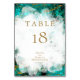 Tarjeta de Número de Mesa de Boda | Deslumbrante piedra preciosa turquesa azul verde geoda acentuada con vetas de pepita de oro jaspeado y cristal de cuarzo - reverso coordinado.