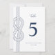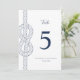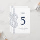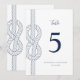 Añada un toque náutico a la decoración de la mesa de la recepción de bodas con estas elegantes y modernas tarjetas de números de mesa de gran tamaño (5'x7"), con un nudo de cuerda náutica a la izquierda, de colores clásicos blanco y azul marino. Encuentra productos coincidentes en la colección, y no dudes en contactarme a través de Zazzle Chat para obtener productos adicionales, otros colorantes o ajustes de diseño.
