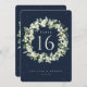 Una carta numero de la mesa de la boda de invierno de doble cara de la marina oscura con bayas de nieve pintadas a mano y eucalipto dispuestos en una hermosa corona botánica. Todo el texto es completamente editable. Otros diseños, productos de números de tabla y artículos de coordinación están disponibles en mi tienda.