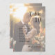Tarjeta de número de tabla de nombres de invitado de Bodas de fotografías y Grace de la Hora de Oro. Eleva la recepción de tu boda con estos sofisticados números de la tabla de nombres de invitados del Boda de fotos "The Golden Hour Grace". Estas elegantes tarjetas de presentación presentan un diseño minimalista con un toque de modernidad. Cada carta muestra una preciada foto de la pareja feliz como telón de fondo, artísticamente suavizada con una delicada capa de escarcha. El número de la tabla se muestra de forma destacada en la parte superior en negrita y elegante, seguido de los nombres de invitados, los nombres de la pareja y la fecha de boda en una tipografía similar. El reverso es un reflejo de la parte delantera, creando un aspecto armonioso y sofisticado. Estas originales tarjetas le dan un toque romántico y personalizado a la recepción de su boda, creando una experiencia inolvidable para sus huéspedes.
