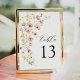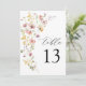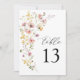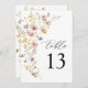 Boho Spring Colorful Wildflower Elegante Sencillo Número De Mesa Boda. Invitación al ramo de flores de estilo bohemio con flores silvestres de colores pastel elegantes y sobrios y botánicos verdes en acuarela impresa a mano. Plantilla de número editable para primavera, verano, otoño (otoño) y bodas de invierno.
