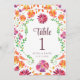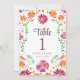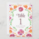 Guíe a los huéspedes para que se sientan cómodos con nuestro encantador número de mesa Boda de la Floral Mexicana Blanca. Estos elegantes números de mesa combinan la elegancia floral de la Fiesta Mexicana, creando un cautivador punto de referencia para la decoración de la recepción de bodas. Con un colorido ilustracion de flores tradicionales mexicanas, estos números de las mesas le dan un toque caprichoso a su escapada.