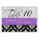Tarjetas Boda Número de tabla Tarjetas Damask Lavender Totalmente Personalizable Número de tabla para Bodas. Personalizar con sus nombres y número de tabla. Personalizar con un número de tabla. Luego pon tu orden de "uno". A continuación, cambie el número de tabla al siguiente número y pida una copia de esa tarjeta. Una tarjeta por cada número de tabla, de modo que para 20 tablas tendrá 20 pedidos diferentes en su carro con los números 1 a 20. Diseño de Elke Clarke ©2011. Gráficos con licencia.