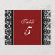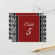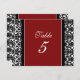 Elegantes y clásicas tarjetas bodas rojas, negras y blancas con romántico patrón vintage de damasco floral. Personalizar estas tarjetas para crear tarjetas de número de tabla personalizado para cada tabla en su boda. Patrón disponible en una amplia gama de productos bodas coincidentes.