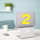 Número Dos. Número 2 Número individual como pegatina. Oro y blanco. 8 x 8 pulgadas