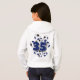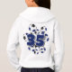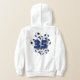 Esta divertida hoodie de fútbol se imprime en la parte delantera y trasera con la imagen de una agrupación de balones de fútbol de tamaño variado azules, negros y blancos - personalizar con el número de camiseta del atleta en la parte trasera - de katz_d_zynes