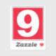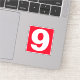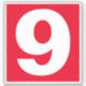 Número Nueve. Número 9 Número individual como pegatina. Rojo y blanco.