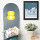 Número ocho. Número 8 Número individual como pegatina. Oro y blanco. 8 x 8 pulgadas