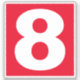 Número ocho. Número 8 Número individual como pegatina. Rojo y blanco.