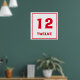 El rojo número doce con fondo blanco con borde rojo. Ayuda a tu pequeño a aprender los números con este diseño número doce.