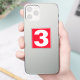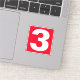 Número tres. Número 3 Número individual como pegatina. Rojo y blanco.