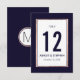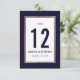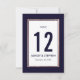 Tarjeta de mesa de boda moderna, simple y elegante con estampado falso de rosa oro y contorno de franja en azul marino y blanco. Este diseño clásico y sofisticado es perfecto para la recepción de boda elegante, con estilo y tendencia. Personalice con números de mesa personalizados en la parte frontal o agregue su propio mensaje personalizado haciendo clic en el botón "personalizar". También agregue su propia inicial de monograma personalizada en la parte posterior. Todo el diseño de impresión de foto.