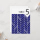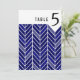 Estas tarjetas de mesa modernas presentan un patrón de chevron en voladizo en azul marino, azul real y cobalto. Productos coincidentes disponibles. Viene en 9 colores increíbles: amarillo, fucsia, menta, azul caspio, rosa peonía, azul marino, negro, melocotón y rubor. Haga clic en el botón PERSONALIZAR para personalizar con su propio texto. PARA VER TODA LA COLECCIÓN, VISITE MI SITIO WEB: glamprettyweddings.com. Para preguntas o solicitudes personalizadas, correo electrónico: cheryl@glamprettyweddings.com/contact. Diseño original "Chevron en voladizo" por Cheryl Daniels © 2014.