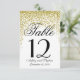Elegante, moderno y chic con purpurina dorada falsa impresa con motas de confeti, tarjeta de mesa de boda. Este diseño clásico y sofisticado es perfecto para la recepción de boda elegante, con estilo y tendencia. Personalice con números de mesa personalizados en la parte frontal o agregue su propio mensaje personalizado haciendo clic en el botón "personalizar". También agregue su propia inicial de monograma personalizada en la parte posterior. Todo el diseño de impresión de foto.