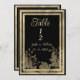 Números de mesa de boda con caligrafía dorada vintage glamour y encaje floral de lujo negro y dorado. Es perfecto para cualquier chica refinada y sofisticada o cualquier persona. Este diseño es ideal para un evento de fiesta elegante y moderno. Personalice este diseño con su mensaje e información personalizada. Todos los diseños se imprimen.