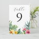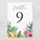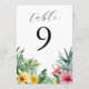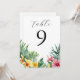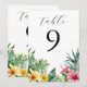 Números de mesa con flores tropicales de acuarela