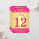 Debes cambiar el número "12" a cada número que necesites, agregarlo a su carrito y luego repetir ese proceso hasta que tenga todas las tarjetas numeradas individualmente que necesite en su carrito. Esta tarjeta de número de mesa a doble cara en rosa caliente exótico y dorado tiene un gran patrón de medallón de círculo de pergamino dorado central en él con corazones ornamentados detallando en él con estrellas y puntos dorados que se encuentran sobre una fondo de fucsia con otra capa de finos remolinos y pergaminos de lavanda púrpura brillantes en él. ****Tenga en cuenta que ninguno de los elementos de esta invitación está levantado o grabado en relieve. Todo se imprime plano. Esta tarjeta de número de mesa sería perfecta para una boda o ceremonia de compromiso india, hindú o musulmana en primavera, verano, otoño o invierno, y también funcionaría bien para otros eventos form