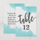 Números de mesa con pinceladas de acuarela azul