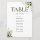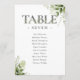 Estos elegantes números de mesa de boda con tipografía floral de vegetación pueden personalizarse con el plan de asientos de sus invitados en letra chic. Las tarjetas están impresas en anverso y reverso (doble cara). Diseñado por Thisisnotme©
