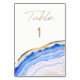 Tarjetas de números de mesa personalizables de doble cara de ágata azul impresionantes